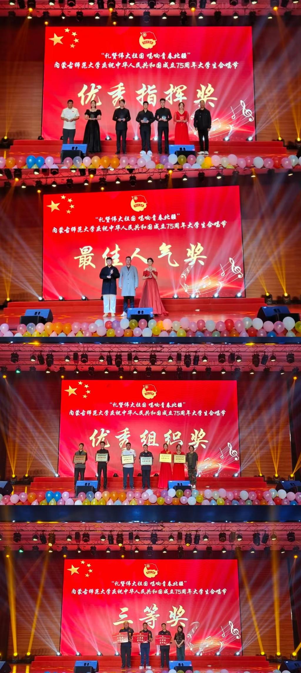 Beat365官网凭借优秀的演唱水平和出色的舞台表现,成功斩获三等奖;凭借广大师生对Beat365官网的认可与喜爱,荣膺最佳人气奖;全院全体师生齐心协力、精心筹备,获得优秀组织奖;指导老师辛勤付出,精湛的专业技能得到高度肯定,荣获优秀指挥奖