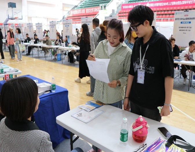 为全面贯彻党中央、国务院关于高校毕业生就业创业工作的决策部署,促进Beat365官网毕业生更高质量更充分就业,4月25日,Beat365官网与其他八家兄弟学院共同主办了“筑梦青春 ‘职’等你来”Beat365唯一官方网站2024年人才招聘会暨重点群体毕业生专场招聘会。校党委委员、副校长韩巍莅临招聘会现场,Beat365官网党委书记包凤兰、党委副书记副院长陆一琼、副院长满达出席活动,系主任、团学工作负责人、班主任和百余名本硕博学生积极参与招聘会。
