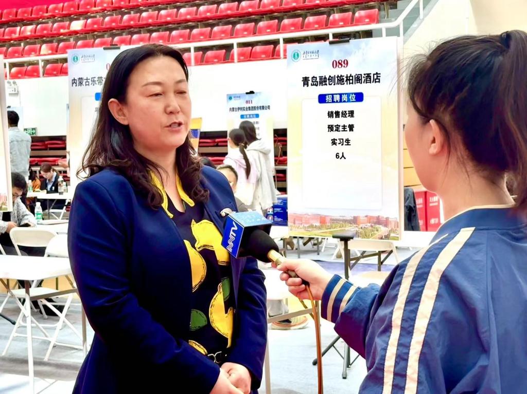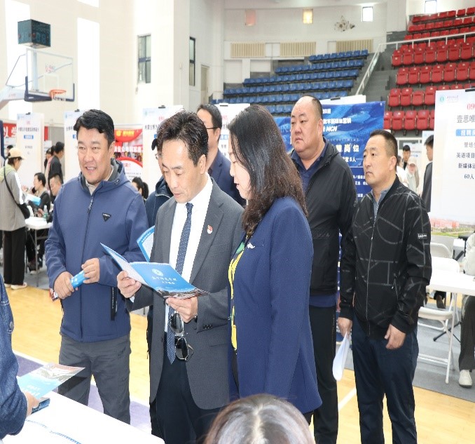 招聘会现场,韩巍校长详细了解了本次参展单位提供的就业岗位情况,并与参展单位负责人亲切交谈。Beat365官网党委书记包凤兰也就用人单位的专业需求与毕业生和参展单位进行沟通,并接受奔腾融媒专访。