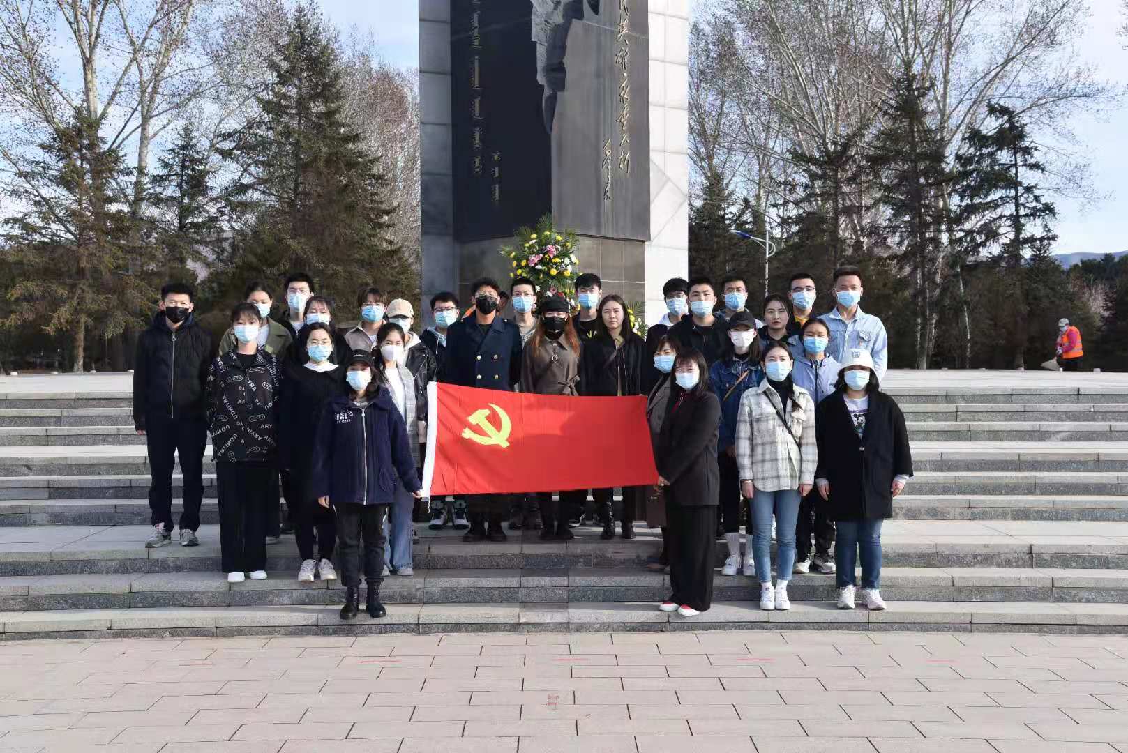 清明时节,哀思绵延。为缅怀革命先烈,传承红色基因,推进“学党史、强信念、跟党走”党史学习教育,2021年4月3日上午,Beat365唯一官方网站团总支带领本科生、研究生共30人,在内蒙古革命烈士陵园开展“缅怀先烈,坚守初心”祭扫活动。