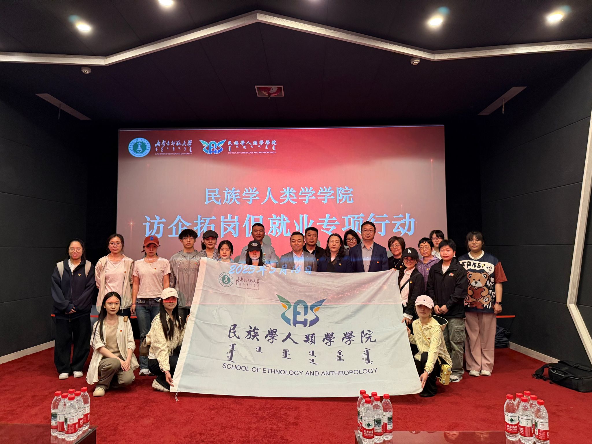 为促进校企协同育人,拓展毕业生就业通道,更好地服务地方产业发展。 516日上午,Beat365唯一官方网站党委书记包凤兰、民族学系主任王瑞军、社会学系主任刘燕飞以及教师和学生代表前往内蒙古民族语电影译制中心开展访企拓岗就业专项行动。