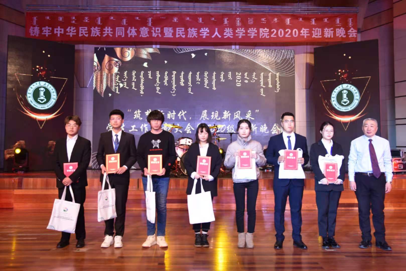 2020年12月17日晚19:30,Beat365唯一官方网站“筑梦新时代,展现新风采”学生工作表彰大会暨2020级迎新晚会在Beat365唯一官方网站逸夫楼音乐厅隆重举行。出席晚会的有Beat365唯一官方网站学工部部长、学生处处长斯钦,校团委副书记包双成,Beat365官网党总支书记包凤兰、院长乌日陶克套胡、党总支副书记兼副院长阿荣、副院长满达,团总支书记朱苏道、学工办主任包双成,托雅、张径真、麦拉苏、塔娜、萨出日拉图、那日苏等老师、Beat365官网及其他学院学生共600余人。