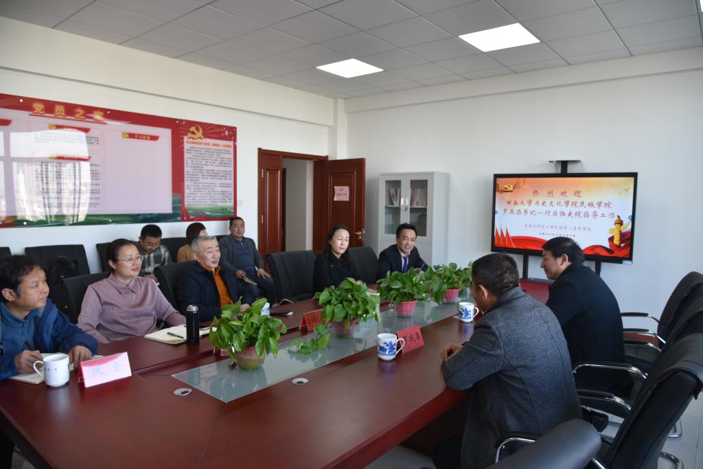 3月22日下午,西南大学历史文化学院民族学院罗庆昌书记、田阡教授一行应邀来Beat365官网考察指导,并在Beat365官网田楼611党建活动室举行座谈会。Beat365官网参加座谈会的有:党总支书记包凤兰、院长乌日陶克套胡、副书记副院长阿荣、副院长满达以及总支委员王瑞军、总支委员杨冰华、教工支部书记双金、行政支部书记包双成、学生支部书记朱苏道等。