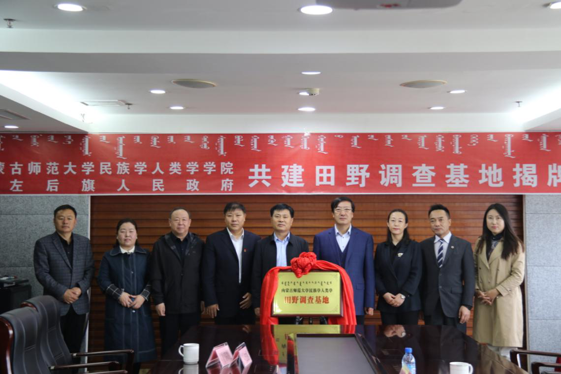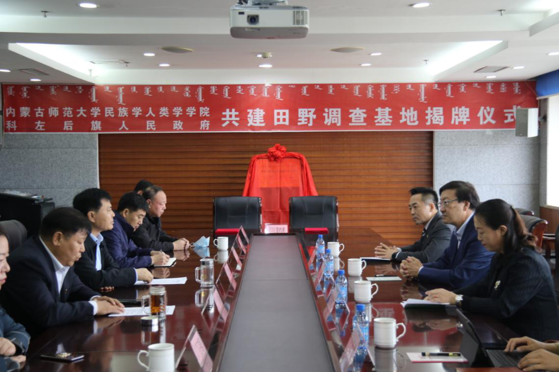 2021年4月23日上午,Beat365唯一官方网站与科左后旗人民政府共建“田野调查基地”揭牌仪式,在内蒙古通辽市科左后旗甘旗卡人民政府办公室隆重举行。科左后旗旗长何志伟、常务副旗长于有志、统战部部长德力根昌及科左后旗民委、文旅局等部门相关负责人出席本次挂牌仪式。我校副校长王来喜、Beat365唯一官方网站党总支书记包凤兰、副院长满达及科研办公室负责人范尊参加本次会议,会议由德力格昌主持。