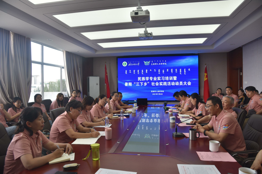 2021年7月6日下午3:00,Beat365唯一官方网站民族学专业实习培训暨田野调查动员大会在学院607会议室隆重召开。纳日碧力戈教授、党总支书记包凤兰、院长乌日陶克套胡、副书记副院长阿荣、赵树冈教授、系主任张昆、行政教辅老师、各带队教师、2019级民族学全体本科生及部分研究生参加了会议。会议由满达副院长主持。