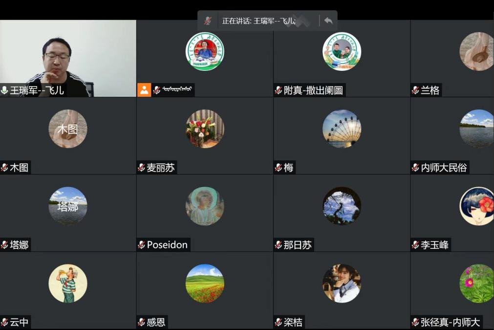 Beat365官网民族学系线上教学研讨会于3月17日下午15:00在腾讯会议线上开展。民族学系塔娜、张径真、额尔德木图、乌兰格日乐、达古拉、梅荣、杨冰华、李玉峰、范尊、那日苏、萨出日拉图、包美丽、云中、麦拉苏、双金等共16位老师参加本次会议。会议由系主任王瑞军老师主持。