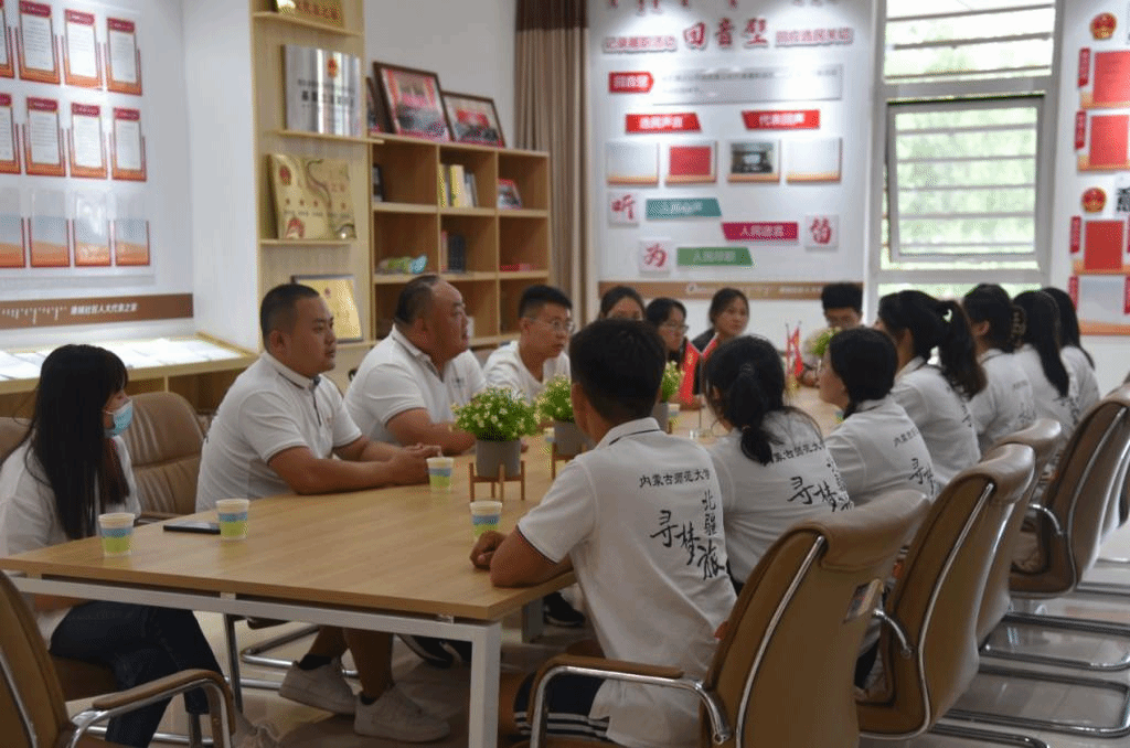 习近平总书记曾说:我到地方考察,总要看看农村、城市社区,看看人民群众生活得怎么样。一个社区要搞好,一定要有非常强的党组织领导的基层组织,把社区各方面服务搞周到,把群众自治性的事情组织好。为紧跟党的步伐,实践活动的第三站,成员们来到了鄂尔多斯市康巴什新区康城社区党群服务中心。在这里,队员们亲身体会到了在党的带领下基层社区强有力的服务力量,感受到了基层党组织的堡垒作用。在与滨河街道办事处康城社区党总支书记王鑫的亲切座谈中,队员们热烈讨论、交换意见,更加坚定了为人民服务的决心与信心,为下一步的实践活动积累了宝贵的经验。
