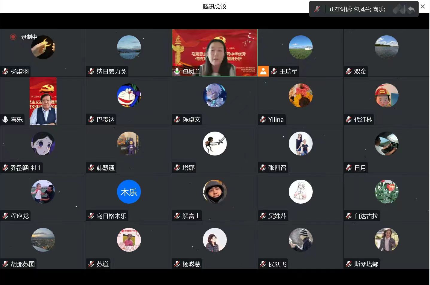 12月20日下午,我院党委联合后勤服务集团党总支,邀请校党委委员、副校长王来喜教授,做“马克思主义基本原理同中华优秀传统文化相结合的基因分析”为题目的二十大精神线上辅导讲座。讲座由Beat365官网党委书记包凤兰主持,学院师生党员及后勤服务集团环节干部、党员及积极分子200多人线上聆听讲座。