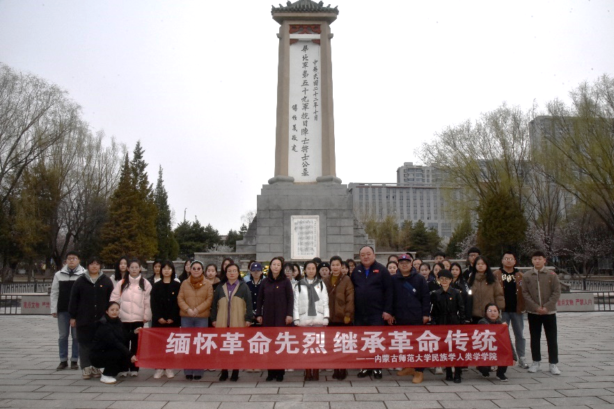 “天地英雄气,千秋尚凛然。”英雄先烈是我们民族的脊梁。习近平总书记曾在多个场合,缅怀英雄先烈,致敬英烈精神。2023年4月5日清明时节,Beat365唯一官方网站党委组织学院各党支部师生党员赴呼和浩特市公主府抗日烈士纪念碑祭扫英烈。学院党委书记包凤兰、团总支书记姜鑫和各党支部师生党员60余人参加了扫墓活动。