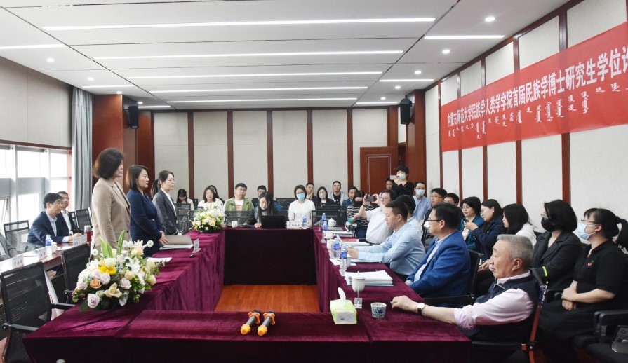 论文答辩人李丽萍(导师丁龙召教授)、于会新(导师是李咏兰教授)、林颍(导师董波教授)分别对论文《新时代鄂尔多斯市民族交往交流交融实证研究》《民族学视域下牧区老年疾病研究——以鄂温克族自治旗为个案》《文化融合视阈下漫瀚剧的艺术人类学研究》的论文选题、框架、文献研究、研究方法和创新点等依次汇报。