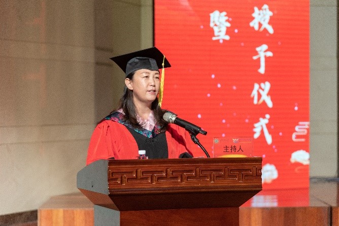 毕业典礼由学院教务科研办公室副主任范尊老师主持。