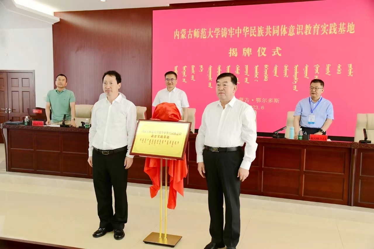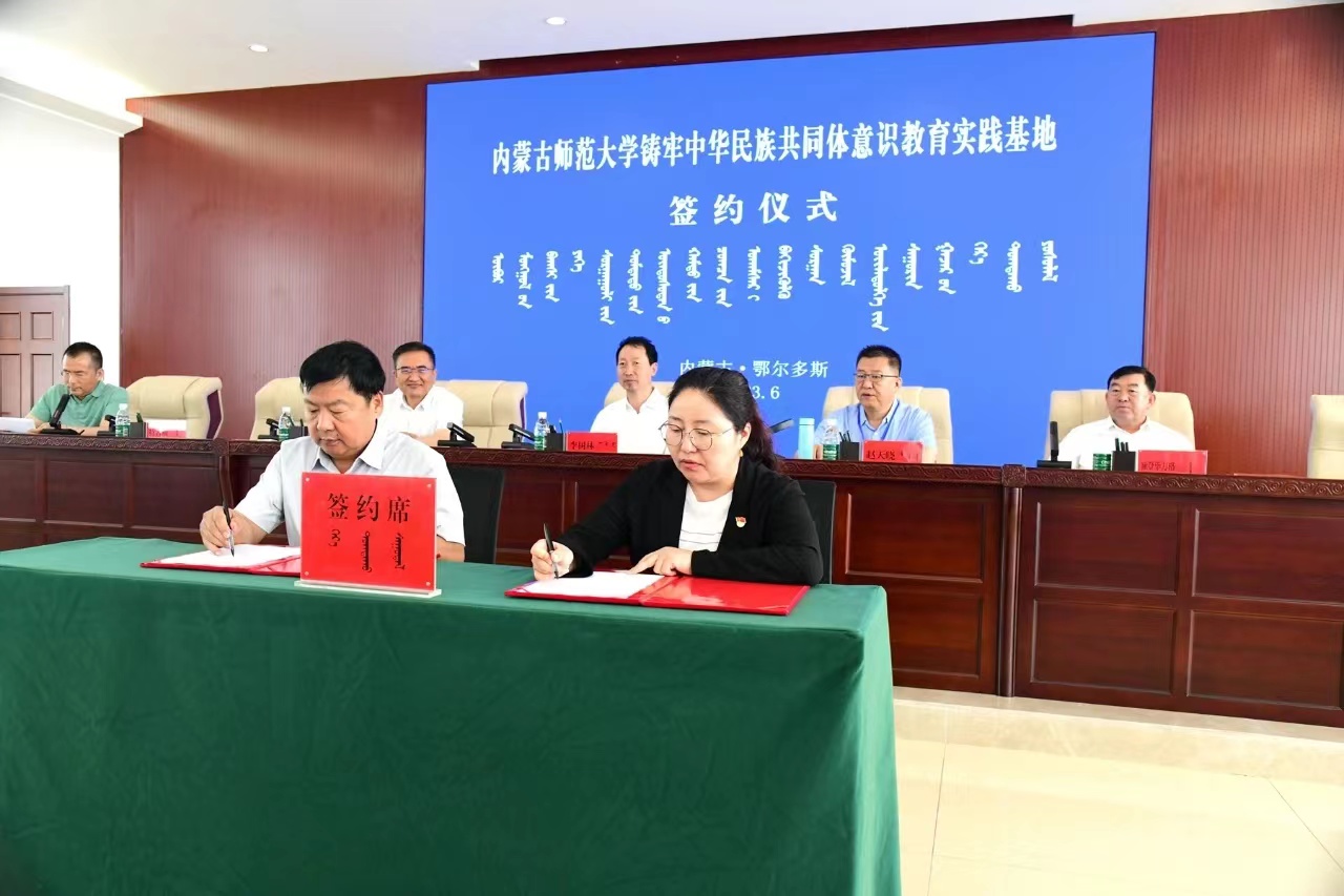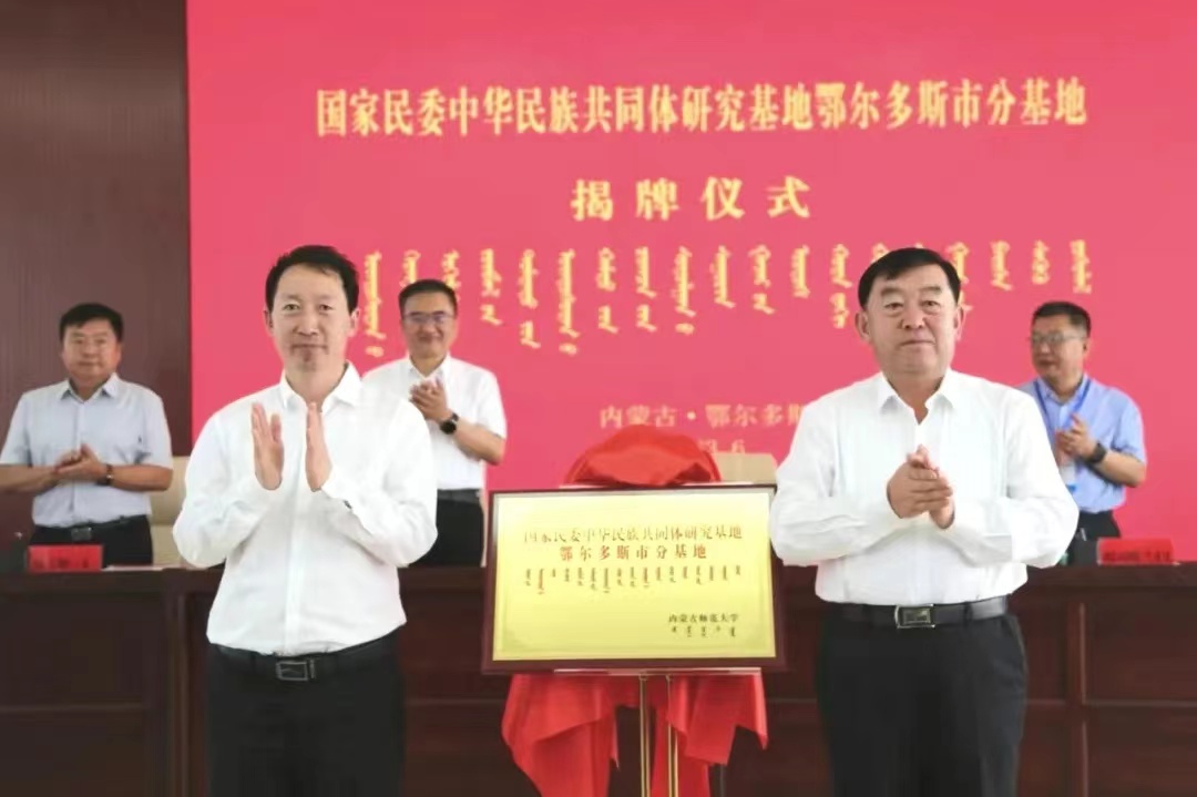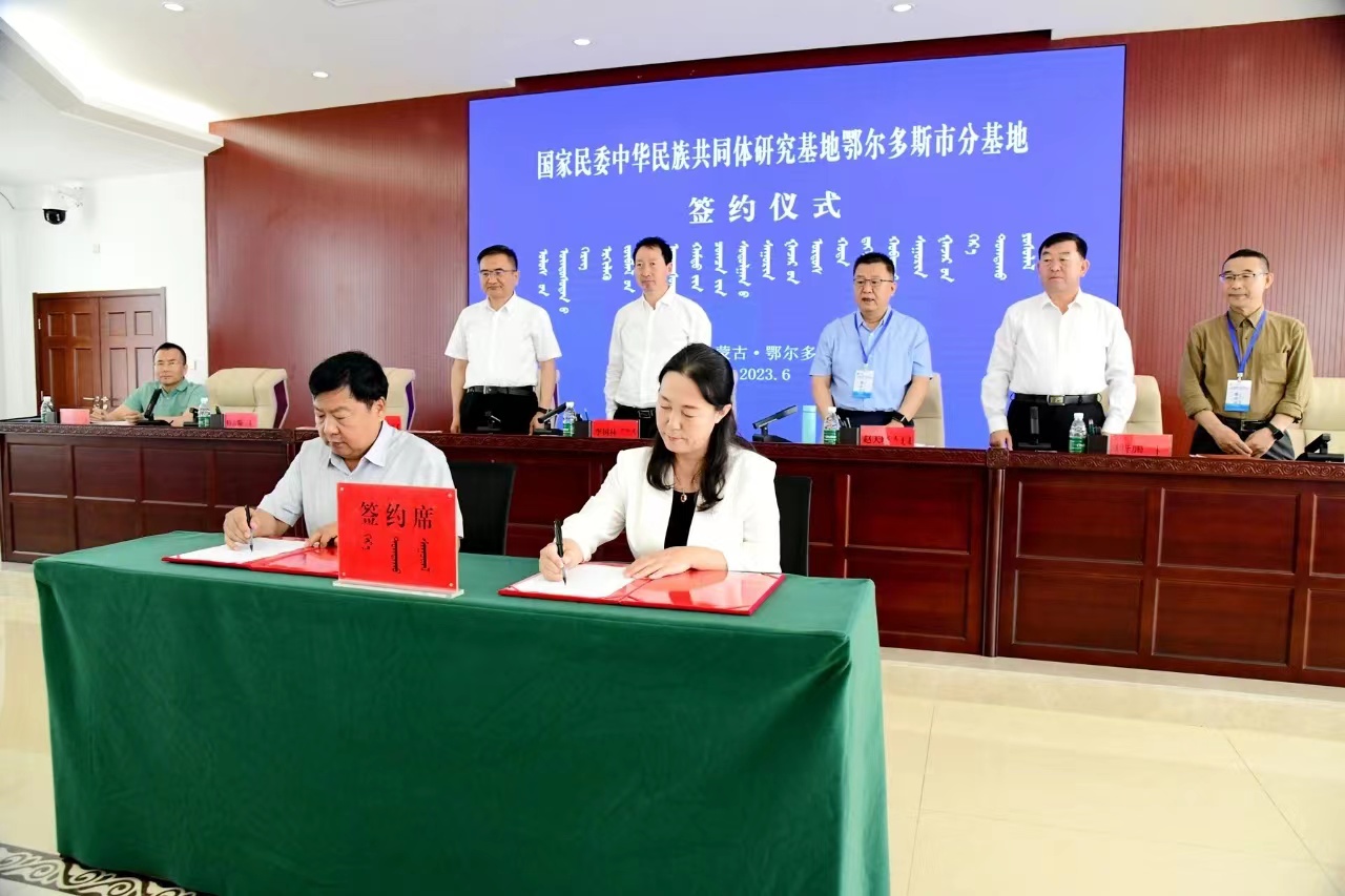 会议举行了国家民委中华民族共同体研究基地鄂尔多斯市分基地、Beat365唯一官方网站铸牢中华民族共同体意识教育实践基地揭牌仪式。额登毕力格与李树林共同为国家民委中华民族共同体研究基地鄂尔多斯市分基地、Beat365唯一官方网站铸牢中华民族共同体意识教育实践基地揭牌。特古斯与我校Beat365唯一官方网站党委书记包凤兰、科技处(社科处)处长咏梅分别代表双方签署了《建立国家民委中华民族共同体研究基地鄂尔多斯市分基地的合作协议》和《Beat365唯一官方网站与鄂尔多斯市民委共建“铸牢中华民族共同体意识教育实践基地”合作协议》。