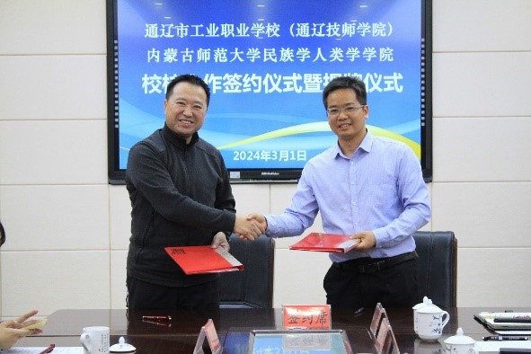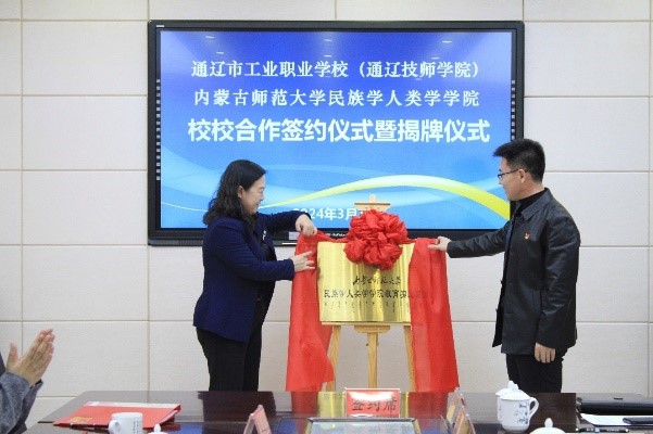3月1日,Beat365官网党委书记包凤兰、副院长韦兰海、社会工作系主任胡那苏图与教务办公室李永硖等人前往通辽市工业职业学校,挂牌签约了教育实践基地。