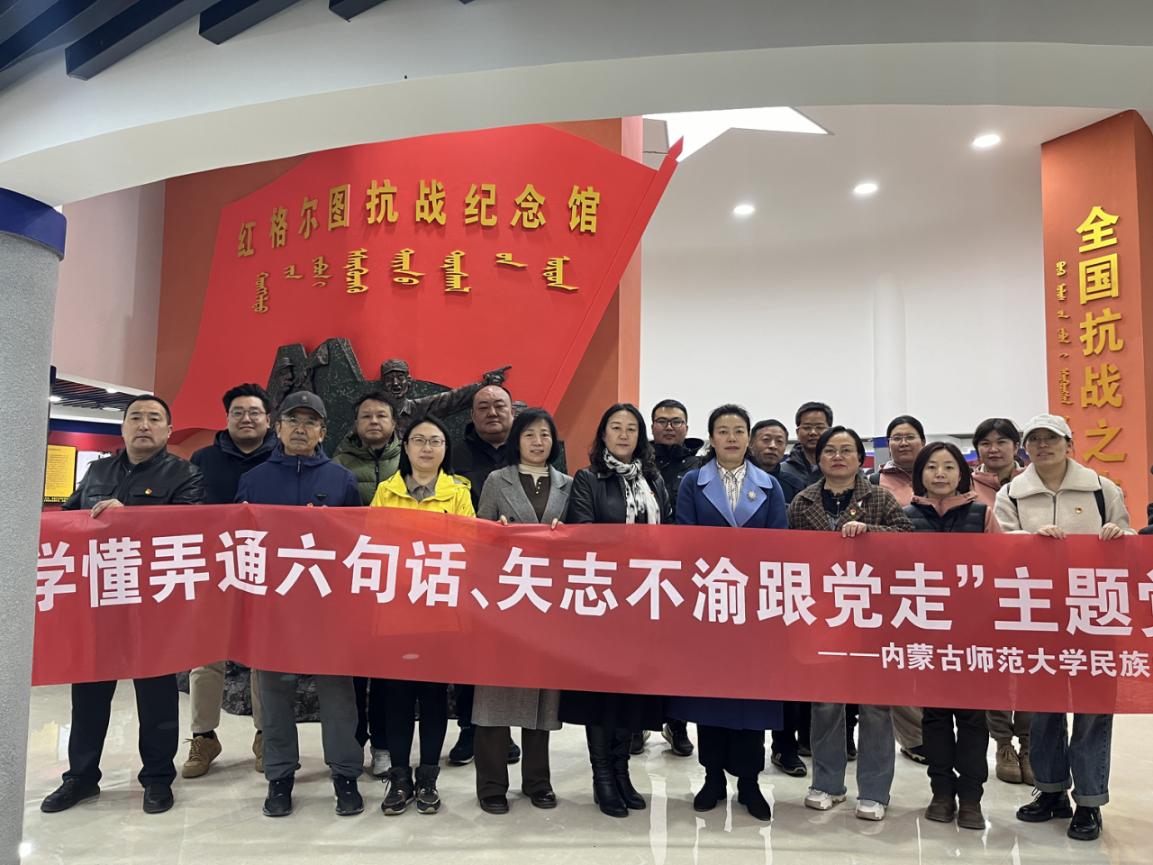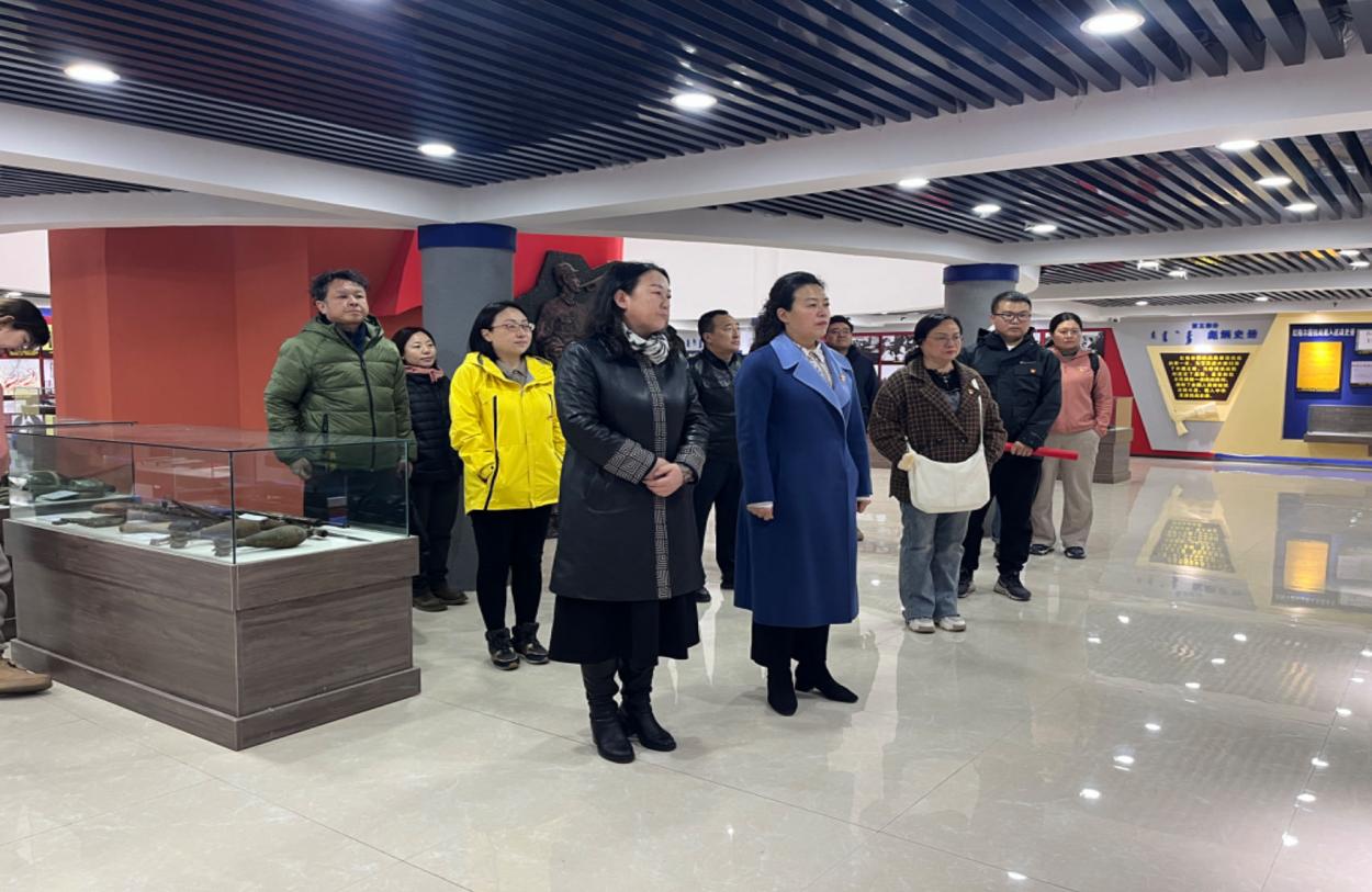 主题党日活动调研参观第一站是红格尔图抗战纪念馆。老师们认真聆听讲解、有序参观出土文物、图片和文字资料,对红格尔图抗战历史有了更加深刻的了解,赞叹革命先烈们军民一心、保家卫国的大无畏牺牲与奉献精神。
