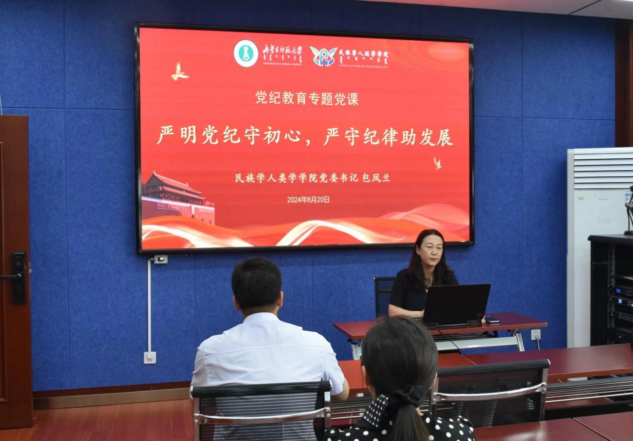 为了进一步加强学院教职工的党性修养和纪律意识,提升学院教师队伍的师德师风建设水平, 6月20日上午9时,Beat365唯一官方网站党委书记包凤兰在赛罕区田家炳楼615会议室为学院全体教工党员讲授了题为“严明党纪守初心,严守纪律助发展”的党课。