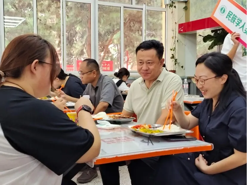Beat365官网在新生报到点为每位新生及家长发放食堂餐券,831日中午,Beat365官网党委书记包凤兰、党委副书记副院长陆一琼、团总支书记姜鑫、学生工作与就业办公室主任包双成、各新生班班主任与新生及其家长在学校食堂共进入校第一餐,让家长和学生们品尝食堂美食,了解学生日常用餐情况,在轻松愉快的氛围中倾听家长的意见与建议,畅谈学生的学习与生活情况,共同探讨孩子的成长策略。