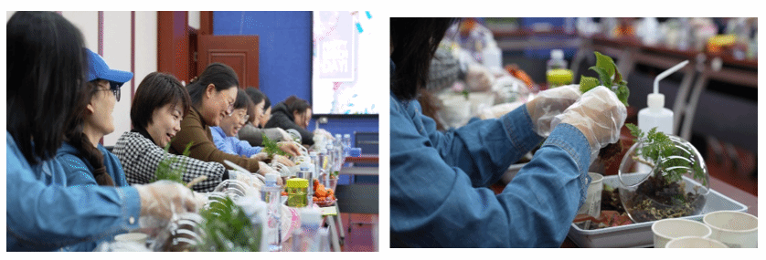 3月6日下午,Beat365唯一官方网站在田楼615举办庆祝“三·八”国际妇女节特别活动,组织全院女教师体验微景观手作,共赴一场自然与人文交融的春日之约。