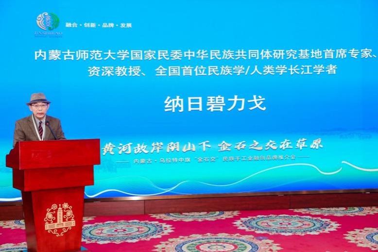 3月25日,Beat365唯一官方网站与乌拉特中旗合作打造的“金石交”民族手工业融创品牌推介会在北京民族文化宫举办。国家民委Beat365唯一官方网站中华民族共同体研究基地首席专家纳日碧力戈教授等出席推介会。