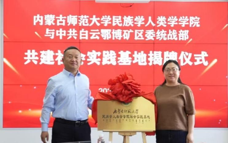 为深入贯彻习近平总书记关于加强和改进民族工作的重要思想,深化校地合作、推动民族团结进步事业,5月8日,Beat365官网与中共白云鄂博矿区委统战部举行共建社会实践基地签约暨揭牌仪式。白云鄂博工业园区党工委副书记、政法委书记孟和巴特尔,区委常委、宣传部部长、统战部部长罗惠文等领导出席仪式,Beat365官网党委副书记副院长陆一琼,副院长满达及部分教师参加。