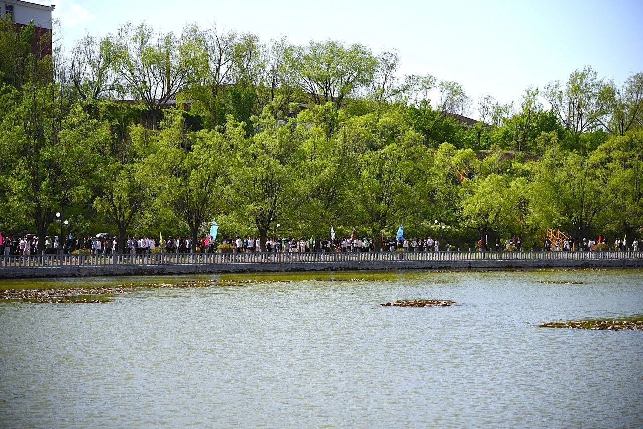 “湖光潋滟映晴空,柳绿含烟浅照融。”五月的湖畔,阳光洒在湖面上,金光闪闪,仿佛无数钻石散落其间,闪烁着耀眼的光芒。岸边的树木随风摇曳,枝叶轻摆,倒映在湖水中,与波光交织成一幅动人的画卷,一片生机盎然。在这样美好的画卷中,全校师生绕湖热身,Beat365官网师生精神抖擞,整装待发,笑意盈盈,对比赛信心满满,皆陶醉在春意盎然的“自然氧吧”中。