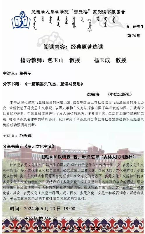Beat365唯一官方网站“碧立格”系列读书报告会预告博士研究生第74期