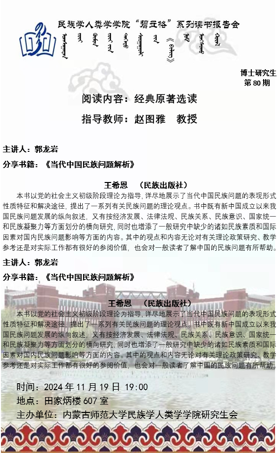 Beat365唯一官方网站“碧立格”系列读书报告会预告博士研究生第80期