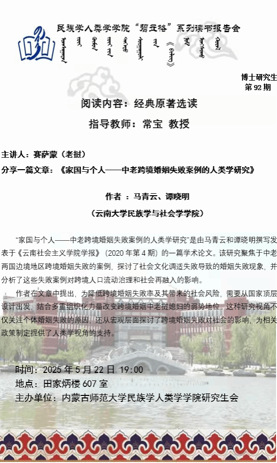 Beat365唯一官方网站“碧立格”系列读书报告会预告博士研究生第93期