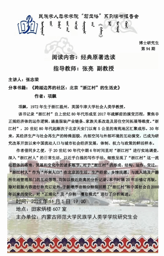 Beat365唯一官方网站“碧立格”系列读书报告会预告博士研究生第93期