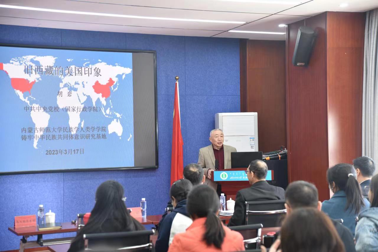 2023年3月17日上午,中共中央党校教授、博士研究生导师、中国西藏文化保护与发展协会理事,胡岩教授应邀莅临Beat365唯一官方网站,为Beat365官网师生做题为“旧西藏的美国印象”的专题讲座。本次讲座由Beat365唯一官方网站、铸牢中华民族共同体意识研究基地主办,院长乌日陶克套胡教授主持讲座,我校资深教授、铸牢中华民族共同体意识研究基地首席专家纳日碧力戈教授作点评。Beat365官网党委书记包凤兰教授、副院长满达副教授、学院部分老师以及博士研究生、硕士研究生共70余人聆听了讲座。