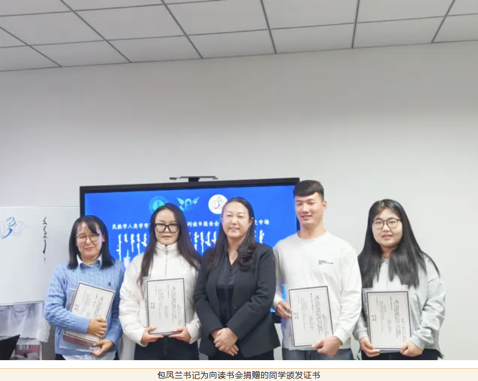 第二阶段是对2024年度读书会的总结。“碧立格”系列读书会中国少数民族史专场能够一直顺利开展,离不开老师和同学的大力支持。“碧立格”系列读书会是Beat365唯一官方网站于2019年创办的读书活动。长期以来,在本硕博不同层次的学生当中开展,收益很多,也有了一定的影响。“碧立格”系列读书会中国少数民族史专场至今已开办14场,25位师生进行了好书分享。而且,一直以来获得国家项目的教师和获得国家奖学金的同学们在不同程度地为读书会捐赠书籍或资金支持,为同学们提供了更广阔的阅读天地,拓宽了学术视野。在现场由梅荣副教授和那日苏博士分别为近期分享读书心得的6位同学赠送书籍。