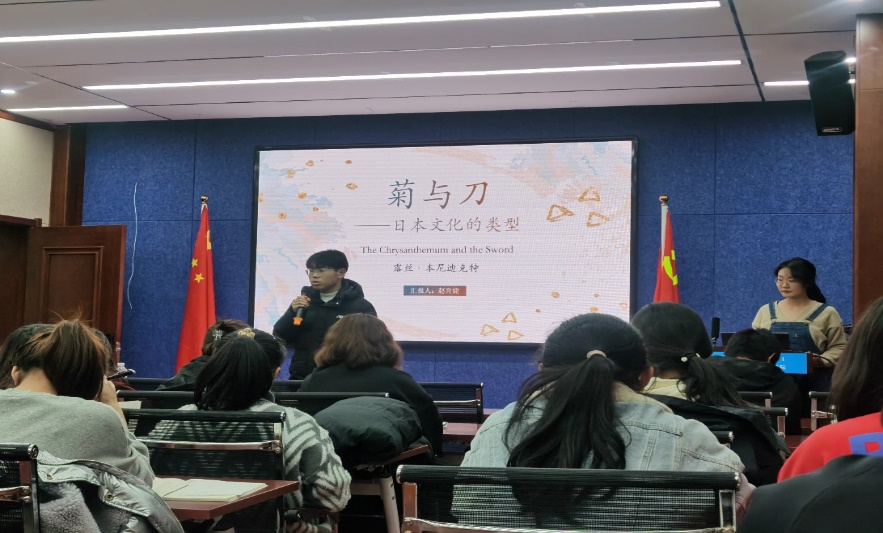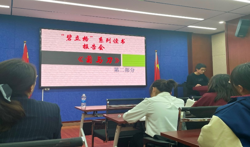 11月19日傍晚19:00,Beat365唯一官方网站2021级本科班在田楼615会议室开展了第三期“碧立格”读书报告会,指导老师包美丽、班主任云中老师莅临现场,梁东新同学主持活动,由赵育婕同学和张学毅同学主讲本尼迪克特的著作《菊与刀》。