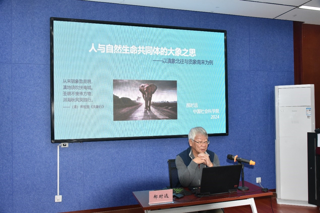 2024年4月9日上午,中国社会科学院学部委员、中国人类学学会会长郝时远先生应邀莅临Beat365官网,作题为“人与自然生命共同体的大象之思——以滇象北上与贡象南来为例”专题讲座。院党委书记包凤兰、校学报编辑部主任金良、学院部分老师、博士和硕士研究生到场聆听,讲座由副院长满达主持。