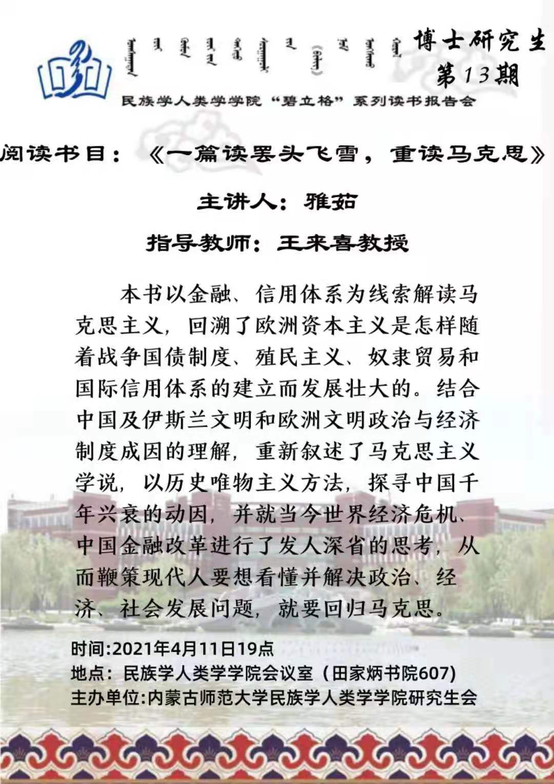 “碧立格”系列读书会博士研究生第13期预告