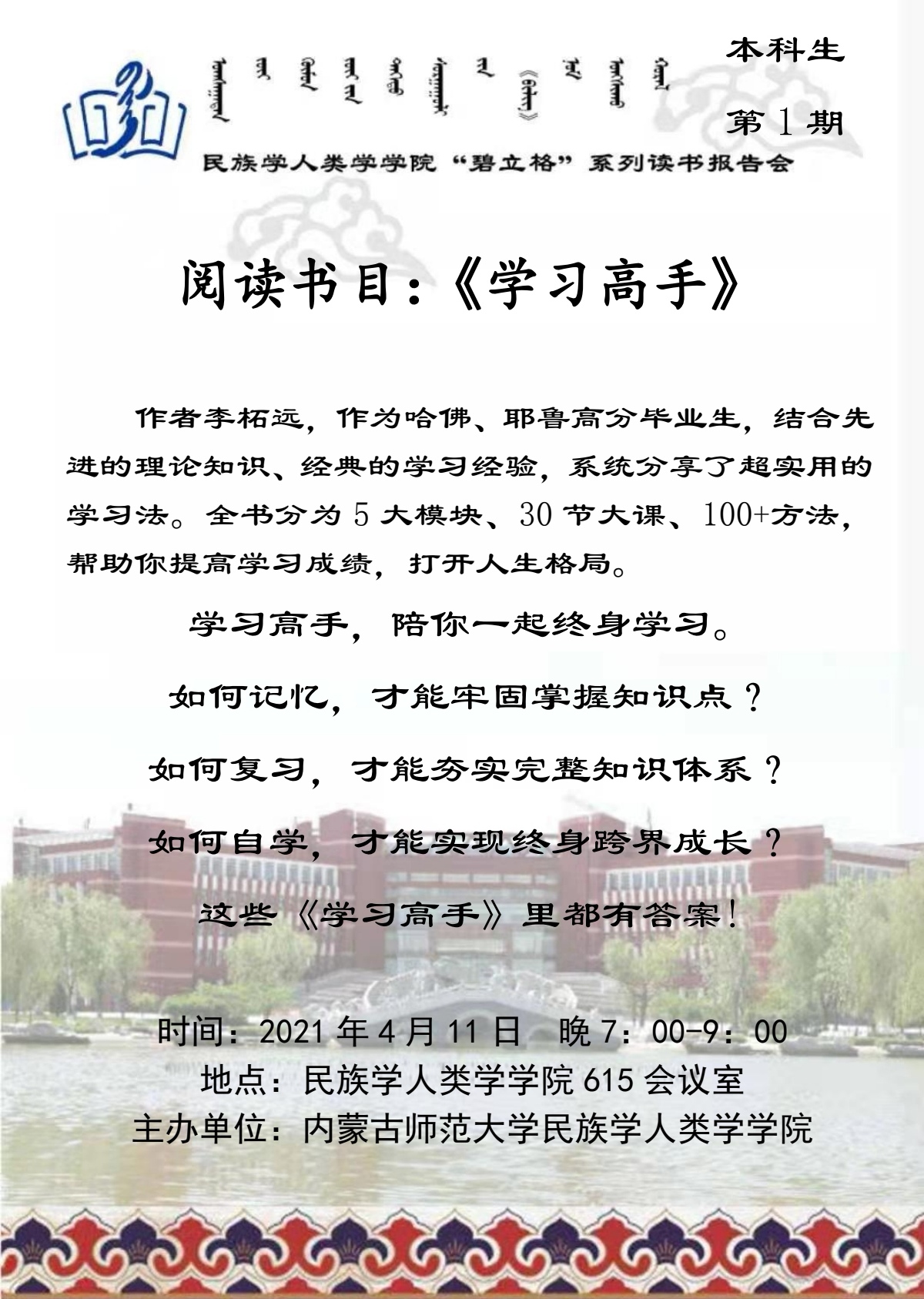 “碧立格”系列读书会本科生第1期预告