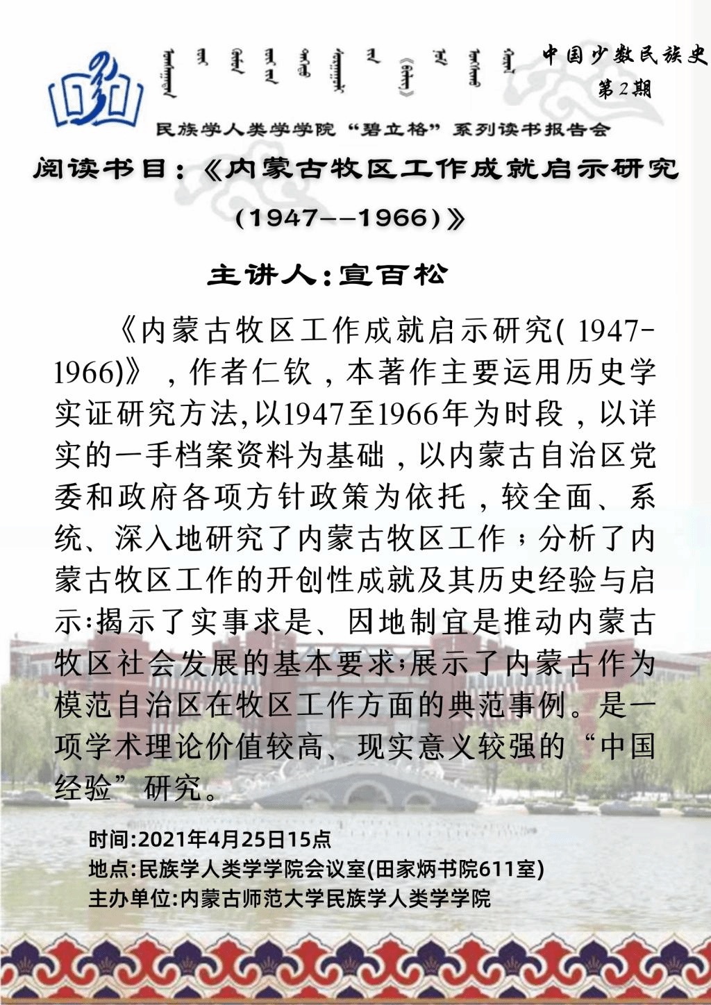 “碧立格”系列读书会中国少数民族史第2期预告