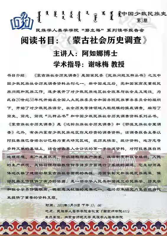 “碧立格”系列读书会中国少数民族史第3期预告