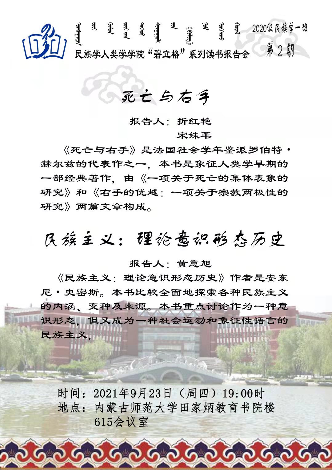 “碧立格”系列读书会民族学本科生1班 第2期预告