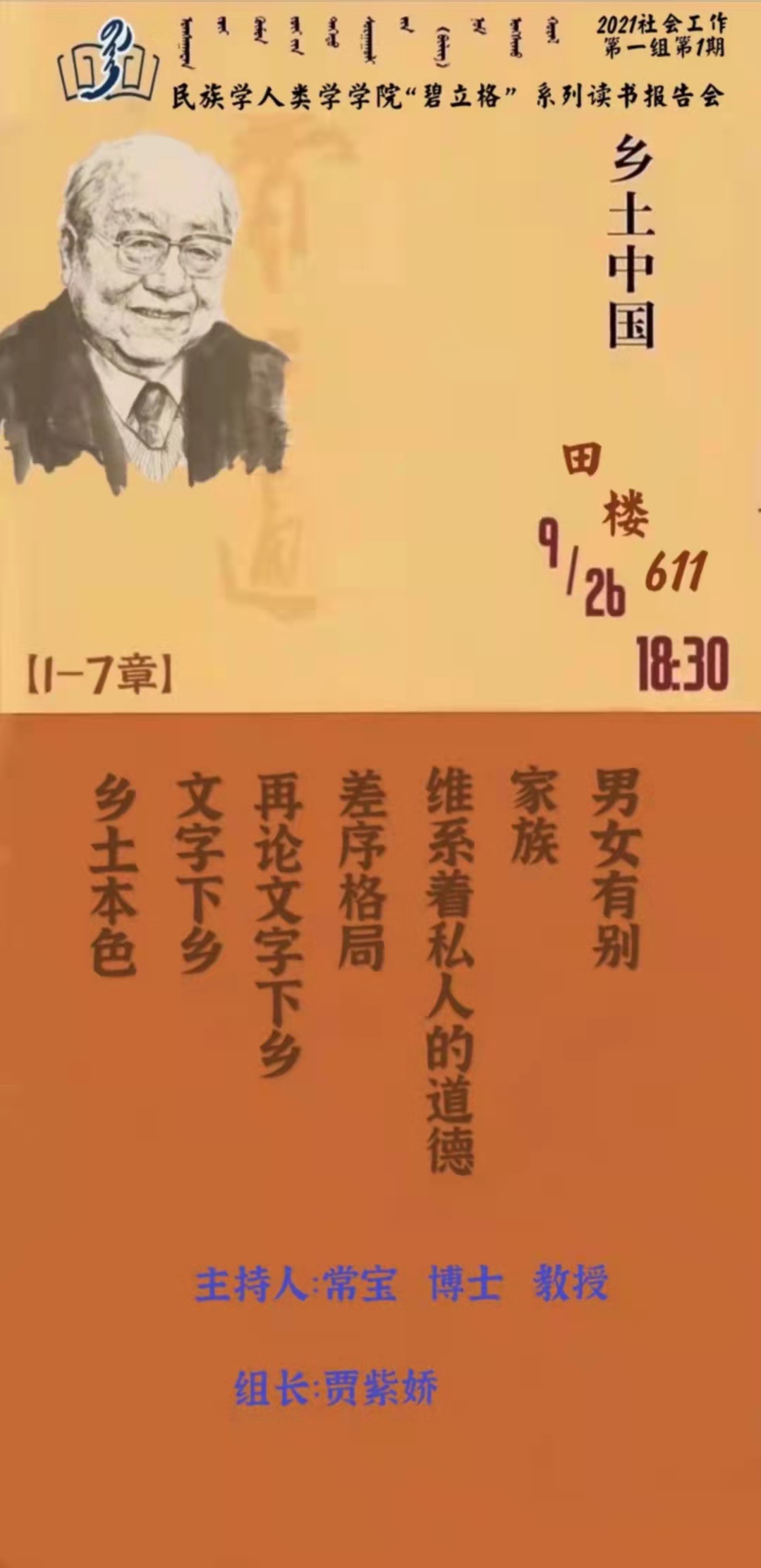 “碧立格”系列读书会民族学本科生1班 第2期预告