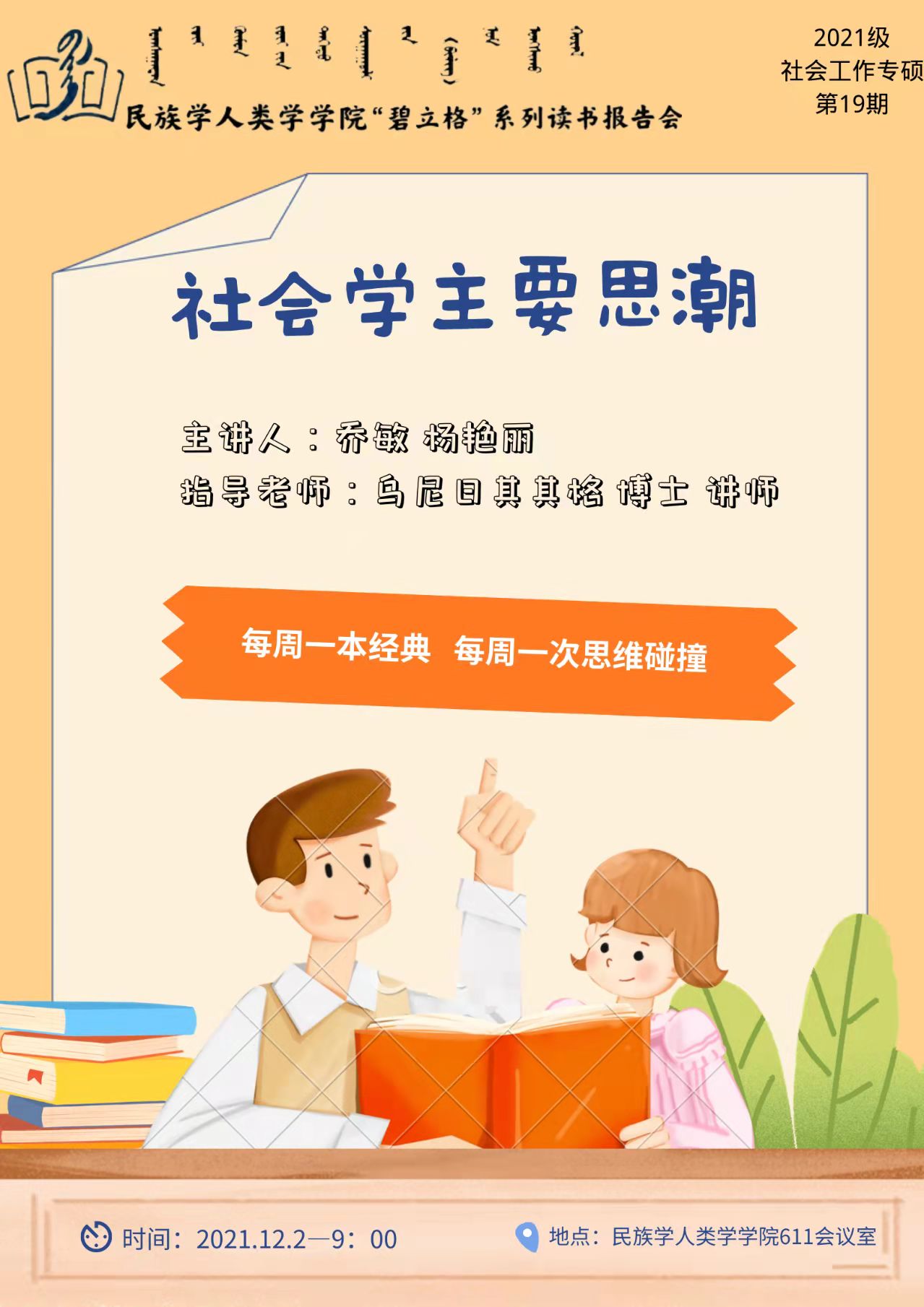 “碧立格”系列读书会2021级社会工作专硕第19期预告
