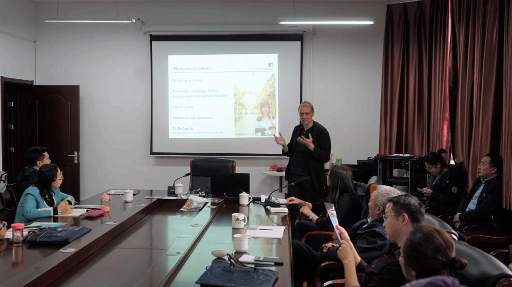 首先,诶登教授通过PPT、小视频介绍了利兹大学的环境、学术氛围、暑期学校、留学生概况和社会学学科的发展现状等信息,让Beat365官网师生充分了解了利兹大学,并产生了深深地向往之情。