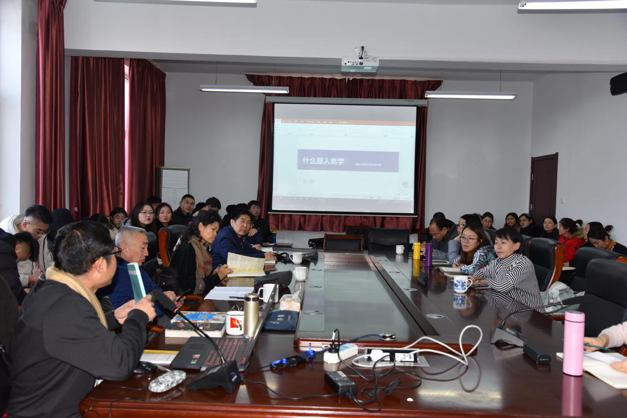 为了提高Beat365官网师生对人类学的认识,增强专业学术感,Beat365唯一官方网站于2019年12月29日下午3点在科研楼301举行第八期读书会,民族学博士苏玉明老师为大家领读了挪威人类学家埃里克森的专著《什么是人类学》一书。本次读书会由博士生李丽萍主持,院长乌日陶克套胡老师、丁龙召老师、塔娜老师、普华才让老师、张径真老师、李玉峰老师、杨冰华老师、包双成老师以及博士生、硕士生、本科生共53人参加了本次读书会。