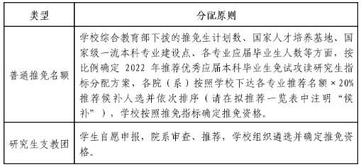 根据教育部下达的2022年推免生名额,综合考虑学科专业发展需要,我校推荐指标分配原则制定如下: