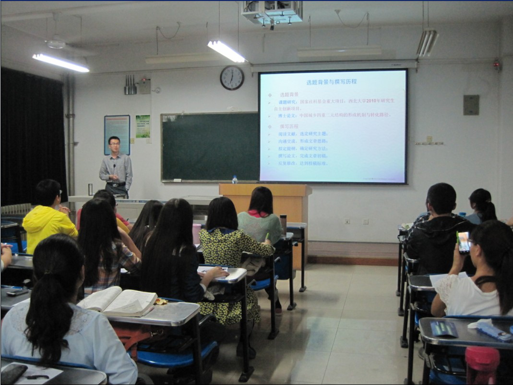 2013年10月10日晚7点,“经曰管云”系列学术论坛第十八讲暨第七届研究生学术活动月学术讲座第二场开讲在1210教室顺利举行,2011级政治经济学王颂吉博士作了题为《中国城乡二元经济结构的转化趋势及影响因素》的报告,100余名研究生参与了此次报告。