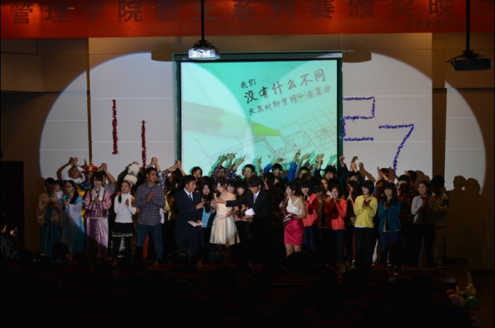 2012年11月27日晚,必赢官网在金海恒业报告厅举行了新生系列赛颁奖晚会。院党委副书记李一凡老师,辅导员马金保、史暐、李若昕、史歌老师以及各年级学生代表共计300余人参加了晚会。