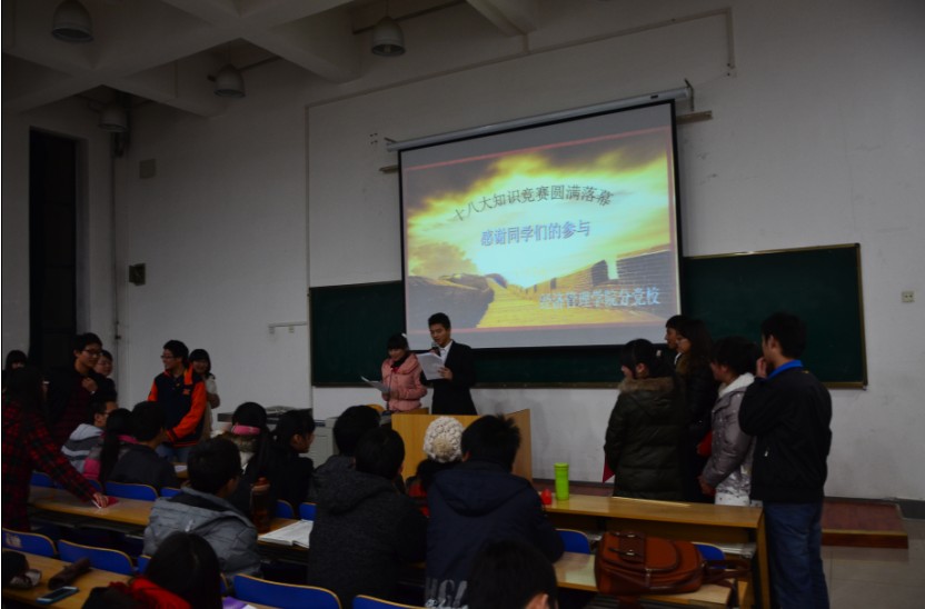 为在广大学生中深入推进学习党的十八大会议精神,激发全院学生的爱党、爱国、爱院热情。2012年12月11日晚上,必赢3003am在4J201教室举办了“坚定理想 立志成才”学习十八大精神主题知识竞赛决赛,全院200余名学生观看了比赛。